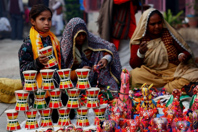 And this girl here, she sold these little musical instruments called damroo. She looked at everyone who walked past her stall. She was curious, perceptive and unassuming too. The women sitting with her couldn’t be bothered with the crowd. Behind them a priest hurled abuses at someone who took a bucketful of water from the shrine he worked for.