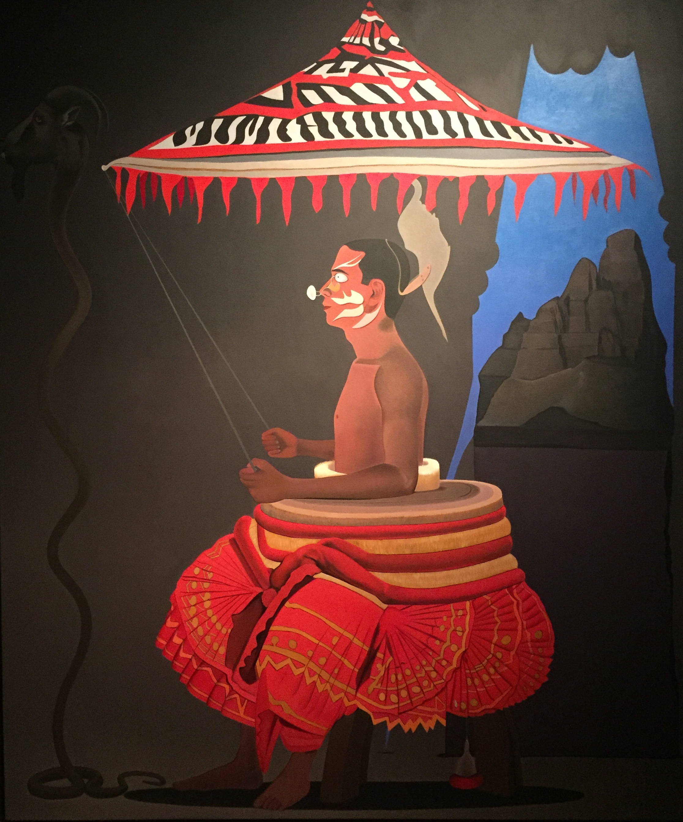In this interview, Surendran Nair speaks about the scale he works with — from the extremely small to large-canvas paintings; of how his usual workspace is the studio, but how the Biennale offers him both another workspace as well an exhibition site different from the gallery; and of how his paintings have been influenced by traditional performing arts and sculpture.