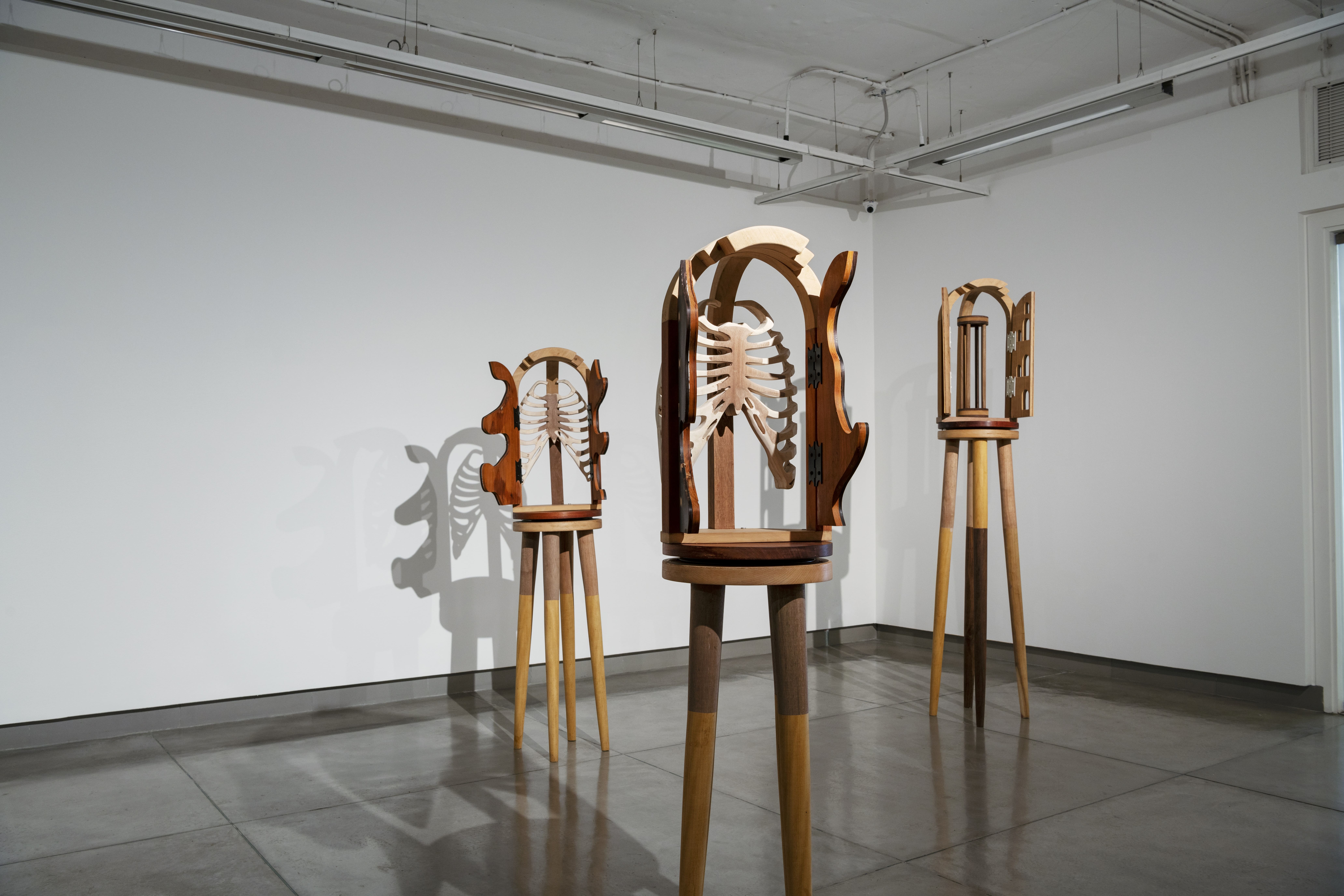 But in another large sculptural work, units of human ribcages are placed inside what appear to be chambers or cupboards, or simply put they could be the artist’s re-creation of a graveyard embodying a sense of the theatre. The exhibit, titled “Sentinels in Time…”, represents an individual’s search for balance and “calibration” in life, which may be achieved by paying attention to one’s interiority.