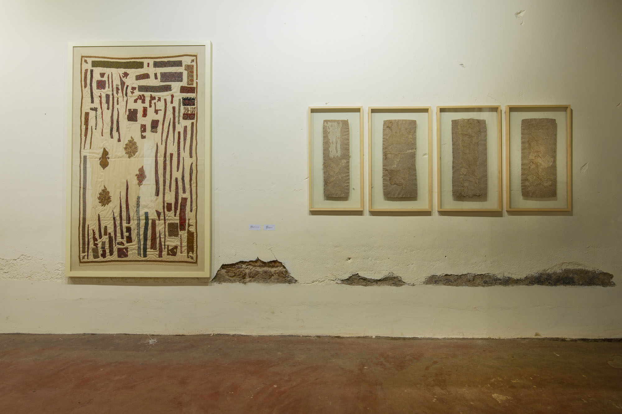 An exhibition of Priya’s works, on view at Aspinwall House, includes many of her innovative mixed-media works and early textiles, where she has used wood, fiber, paper and cloth. Scrolls and tapestries hanging from the ceiling, and a wide range of works mounted on the wall form part of the presentation.