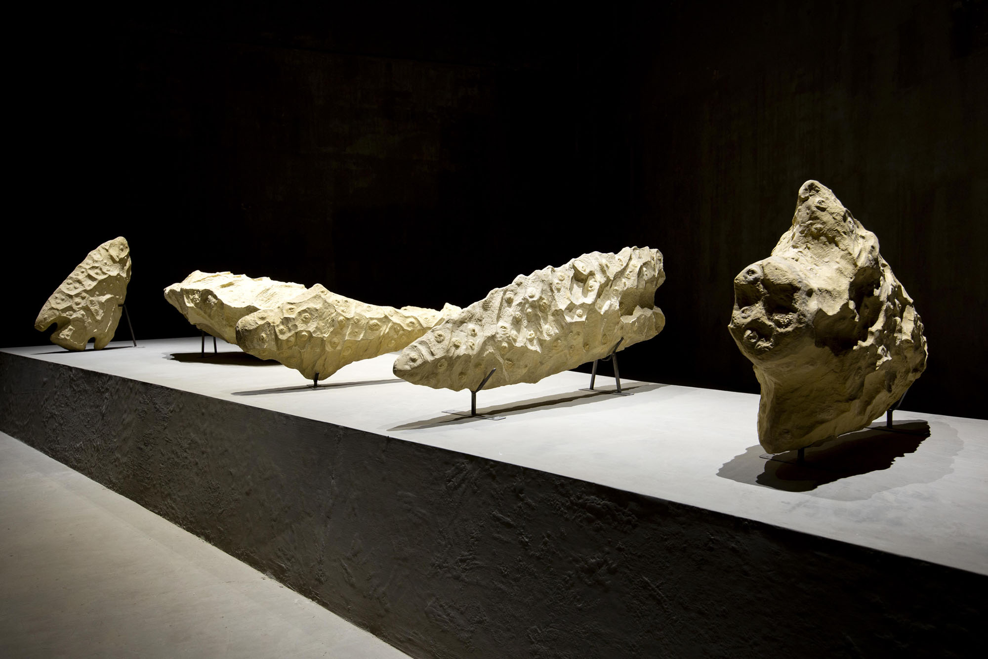 Even as he looks to the prophesied future in his installation, the form of his exhibits has been informed by a landmark discovery from the prehistoric era, which is the first evidence of tool construction millions of years ago.